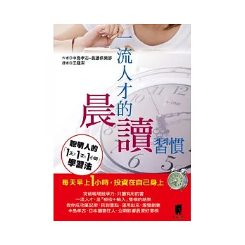 晨間讀書可以一次解決以上三大問題。自從雷曼兄弟倒閉事件引發了連鎖效應後,「裁員」已經成為管理學中常見的各種專有名詞這件事,在以前經濟起飛的時代,吃閒飯不做事的人,也可以在公司混飯吃,然而,如今的企業只想留下有能力的「人財」,不需要多餘的人。越是經濟不景氣,一流人才就越受到矚目。而在日本,我們發現,這些企業爭相聘用的人才,都有早起與晨讀的習慣,可以說,晨間學習讓一流人才步步高升。讀書的成果必須從職場得到回饋,否則,就不值得投資寶貴的時間和金錢。本書教導你:怎樣選書?怎樣閱讀?怎樣吸收、做筆記?怎樣馬上運用他人的智慧?怎樣利用晨讀來學英文?數位工具怎樣幫助我們更加有效率地學習?作者甚至公開影響他最深遠的書單,並且詳細說明這些好書的核心價值。作者簡介中島孝志出生於東京都,早稻田大學政經學院畢業,完成南加州大學研究所課程。在PHP研究所、東洋經濟新報工作後自立門戶。在經營公司的同時,還擔任經營顧問、經濟評論家、新聞記者、作家(另有筆名)、出版.電影製作人,並在大學、商學院授課,在各個領域的表現都十分活躍。主持由商務人士組成的讀書會「關鍵人物網絡」、「原理原則研究會」已經有二十多年的歷史。除了著有多本以商業書為中心的暢銷作品以外,最近推出的「社長熱愛的算式」和「成人工作諮詢室」等網站也深受好評。晨讀俱樂部博客來網路書局由中島孝志主持以靈活運用早晨時間投入學習為主旨的團體。參加的成員除了商務人士以外,還有經營者、主播、譯者、劇本作家、工程師等活躍於各個領域中的有志之士。譯者簡介王蘊潔喜歡閱讀,藉由閱讀日文著作,了解另一種文化。期許自己忠實扮演好文字媒介的角色,讓更多讀者貼近了解原味的日本。博客來書店